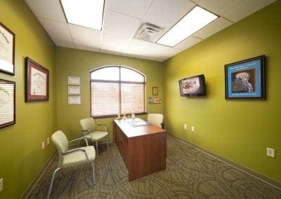 This ground-up facility houses a family chiropractic clinic with reception area, offices, and patient rooms. Stylish and durable finishes were installed on the interior while classic and functional elements appear on the exterior.